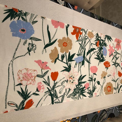 Uusi Marimekon puuvillakankaasta ommeltu kappa/kaitaliina.