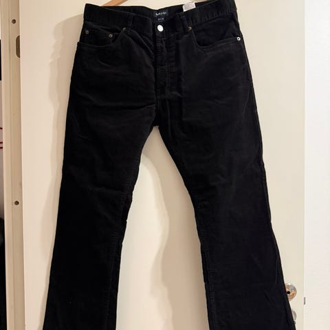 Väri musta, mutta vähän haalistunut. Leveät lahkeet.