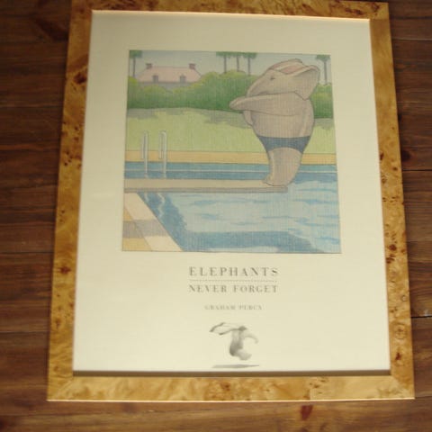 Laadukas taidekuva Graham Percyn vekkulista "Elephants never forget" alkuperäisteoksesta: