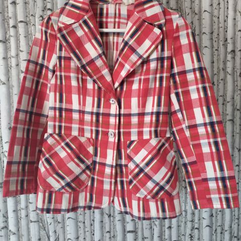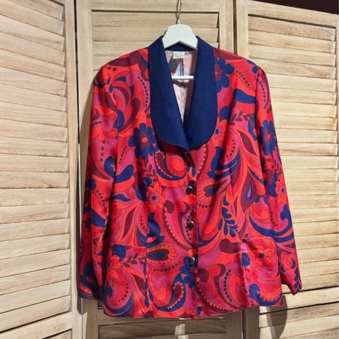 Koristeellinen kirkkaanpunainen vintagebleiseri, 70% fibriaani 30%polyester