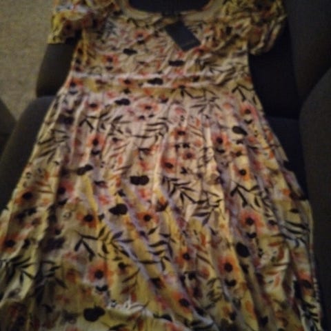 Uudenveroinen raidallinen trikoomekko. Koko vastaa enemmän M kuin L.