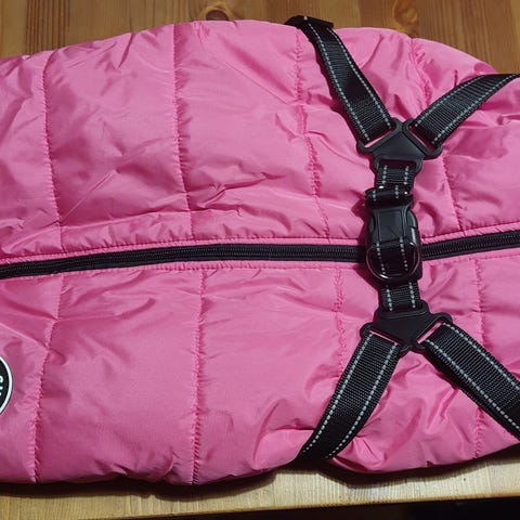 Uusi toppaliivi jossa valjaat mukana. Tosi kätevä, näitä vaan tuli tilattua useampi kun koko ei osunut omalle koiralle.