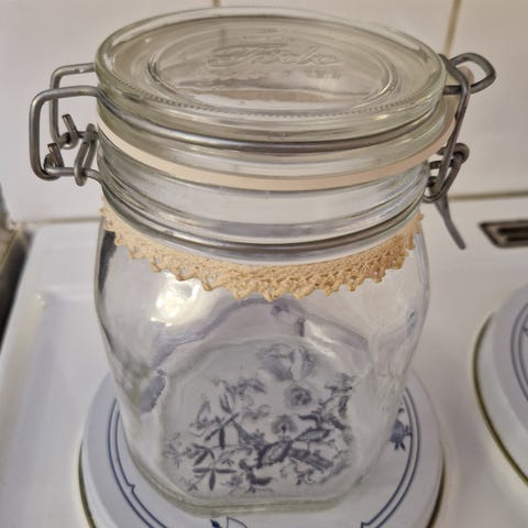 Made in Italy vintage lasipurkki Fido 3/o4 l käyttämätön ollut koristeena.