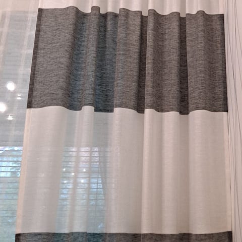 Hyvässä kunnossa, kuin uudet. En löytänyt mitään jälkiä verhoista. Mitat 147x220cm.