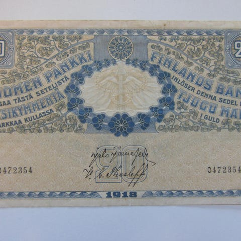 Keräilijät huomio: 20 mk:n seteli vuodelta 1922, lit c