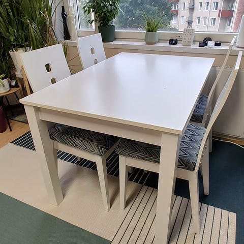 Jatkettava ruokapöytä ja 6 tuolit