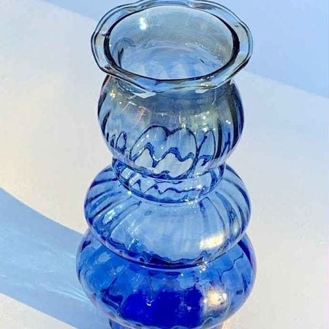 Hakusanat: lasi lasinen sininen sini maljakko kukille koriste sisustus vaasi
