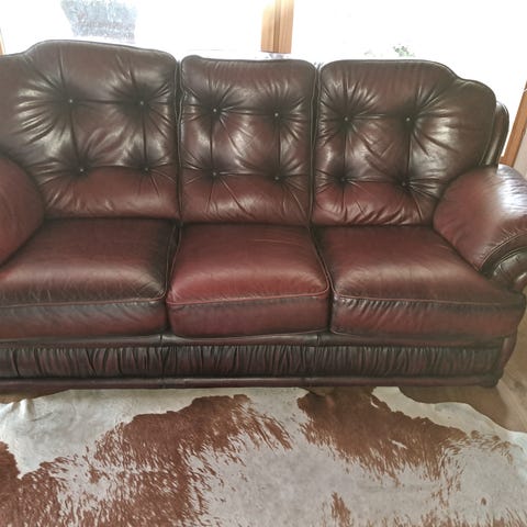 Pari vuotta vanha nahkasohva vierashuoneesta. Ei ole jälkiä eikä ruhjeita. Uudenveroinen.