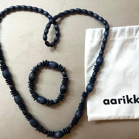 Myydään Aarikka helmet ja rintakoru, väri oranssi/punaruskea