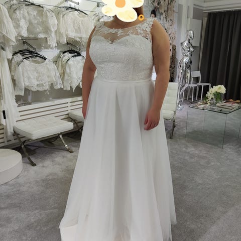 Mekko on plus mallistoa koossa 50. Itse käytän kokoa 46, mutta tämä istui ja laskeutui kivasti vaikka oli väljyyttä. Olisi voinut kaventaa hieman mutta jälleenmyyntiä ajatellen en sitä tehnyt ja istui silti kivasti.