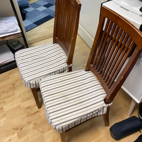 Myydään 2 kpl Lahden puutyön Trio Raita -tuoleja.