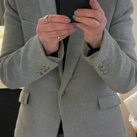 Myynnissä tummansininen Zaran bleiseri. (Kuvissa näyttää mustalta)