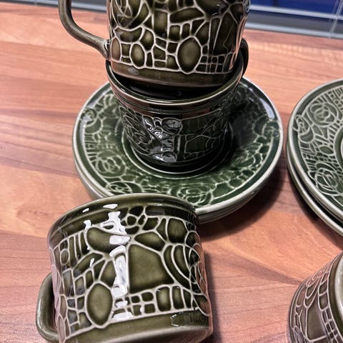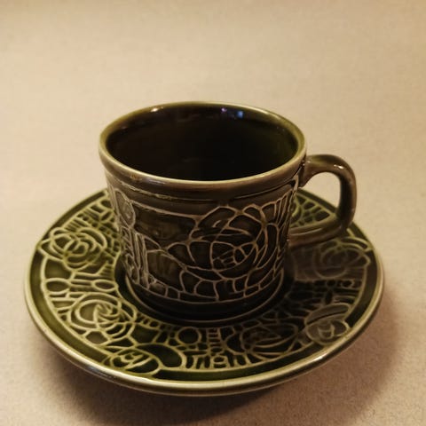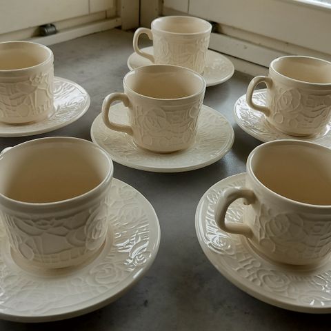 Virheetön, vintage Tams England kahvikuppi ja -lautanen. Kupin tilavuus 1,5 dl, lautasen halkaisija 13 cm.
