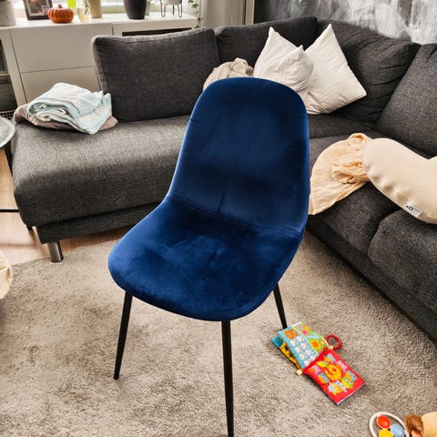 Myydään 6kpl sinertäviä irtopäällisiä ruokapöydän tuoleihin. Sopii sekä matala selkänojaisiin että korkea selkänojaisiin. Kolmannessa kuvassa todellinen väri ja kuosi näkyy hyvin.