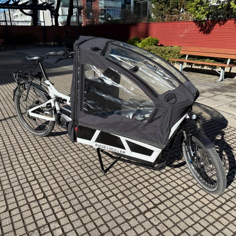 Riese & Müller Load 60 on oma suosikkipyöräni ja olen ajanut sillä tuhansia kilometrejä. Tämähän oli ensimmäinen ja yhä harvoja täysin jousitettuja tavarapyöriä, joka tarjoaa tasaiset kyydit matkustajille ja polkijoille. Kanttikivet ja kuopat eivät turhaan täristä. Muutoinkin Load on aina toimitettu parhailla varusteilla. Bosch, pitkät ja lyhyet ajovalot, jarruvalot ja niin edelleen.