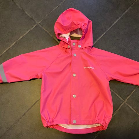 Myydään Didriksons-sadetakki koossa 80. Mennyt meillä myös koossa 86. Pitää hyvin vettä. Paikoitellen väri kulunut, mutta ei ole esim murtunut mistään kohtaa. Parissa napissa kulumaa.