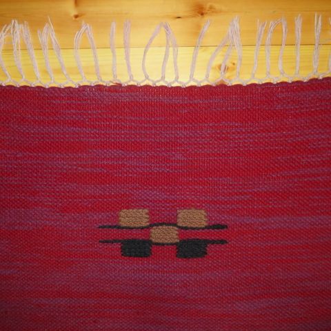 Myydään retrohenkinen, vanha, siistikuntoinen ja lämmin villainen nukkamatto. Koko pohjasta mitattuna 138 cm 64 cm. Hapsut tuovat noin 5 cm lisää molempiin pituuksiin. Pohjan tahra ei näy päälle.