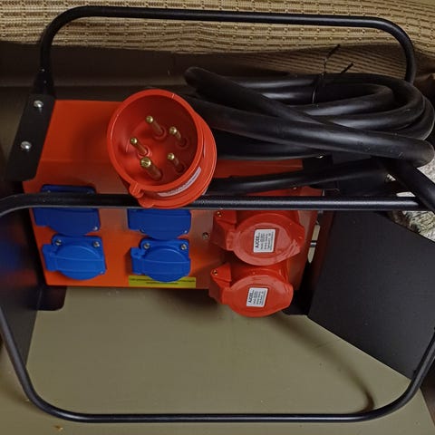 Brennensthulin jako-/alakeskus voima- ja valovirtaliitännöillä (2x400V + 6x230V). Keskuksen johdon pituus n. 3m.