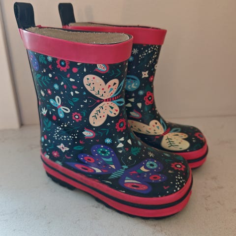 Myydään erittäin hyvässä kunnossa nätit kimmeltävät kumisaapaat.