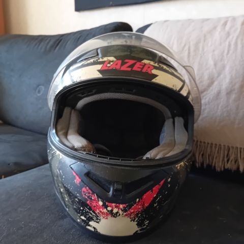 Kypärä on hyvässä kunnossa, mutta käytön jälkiä näkyy. Sopii esimerkiksi mopon tai skootterin käyttäjälle.