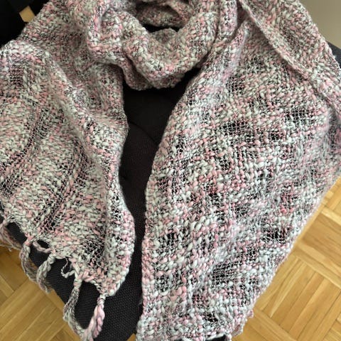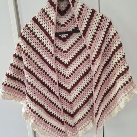Tosi reilu koko tähän huiviin voi kääriytyä, pitkä sivu n.190cm, korkeus keskeltä n.108cm