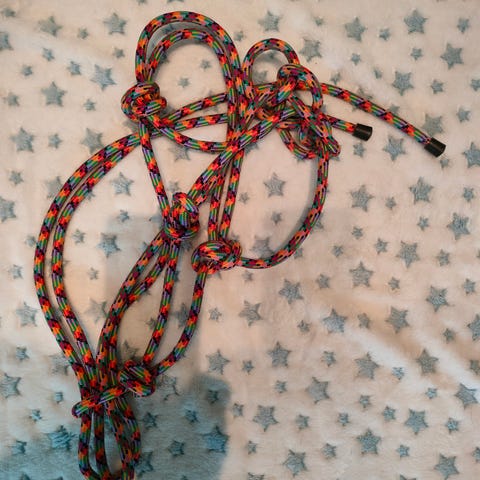 Päähän testattu riimu, jäänyt käyttämättä. Siistissä kunnossa, jämäkkää narua.