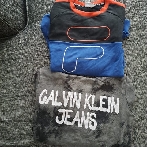 Calvin Kleinin vahvaa puuvillakangasta oleva pusakka. Kokomerkintä M, koko nuorelle.Keinonahkatereet taskuissa ja vetskarissa. Olkapäät keinokuitua. Vain nouto Toppilansalmesta.
