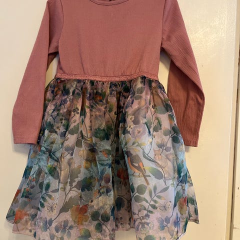 H&M kirjava kesämekko/hellemekko koossa 98/104. Yhden pienen tahran löysin (kuva) heikosti erottuu kuosista, muuten siisti käytetty kunto. Eläimetön talous.