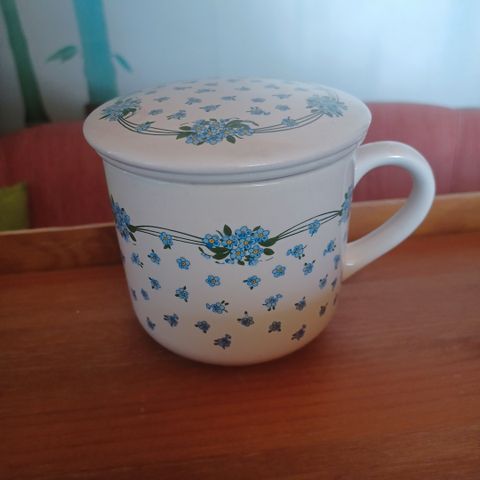 Kahvi ja teemuki Nostalgic Art. Korkeus 9,5cm ja suuaukko 8,5cm. Kunto moitteeton. Nouto Saimaanharjulta 10km Lappeenrannasta. Voin postittaa mutta postikulut sinulle