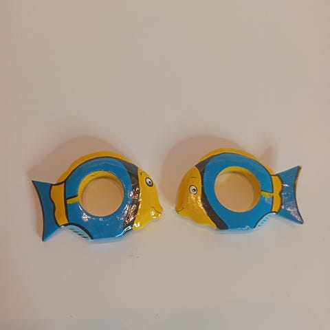 3kpl puisia värikkäitä lautasliinarenkaita. Hyväkuntoiset, pientä käytön jälkeä.