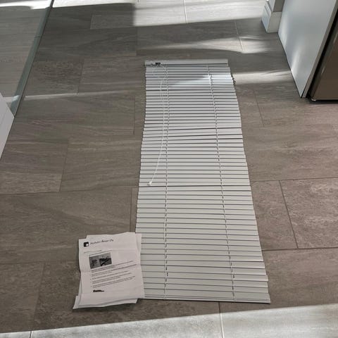 Pinta-asennettavia sälekaihtimia ikkunaan.