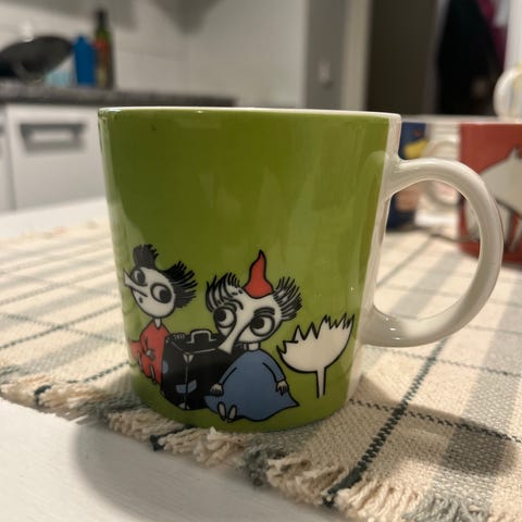 Myydään muumimuki. Arabia Finland. Tiuhti ja viuhti.
