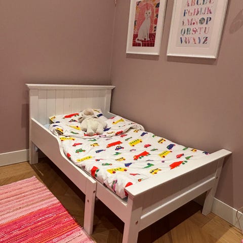 Talonpoikaistyylinen jatkettava lastensänky.