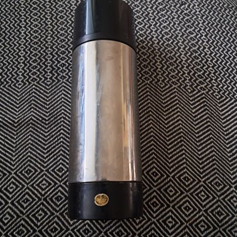 Teräksinen termospullo, jonka molemmissa päissä 5 dl säiliöt. Kannet toimivat niin kuppeina kuin syvinä lautasinakin esim.keitoille. Pullossa myös koukut, joihin voi laittaa kantohihnan.