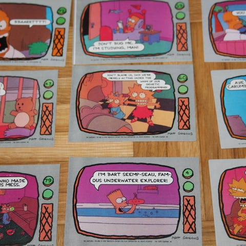 Panini, Euroflash, Topps, Semic, Figurine, keräilysarja, tarrasarja, tarrakuvat, Homer, Bart, Matt Groening, Retro, vintage, sarjakuvat, Avaamattomia paketteja, nostalgia, Atlantic,