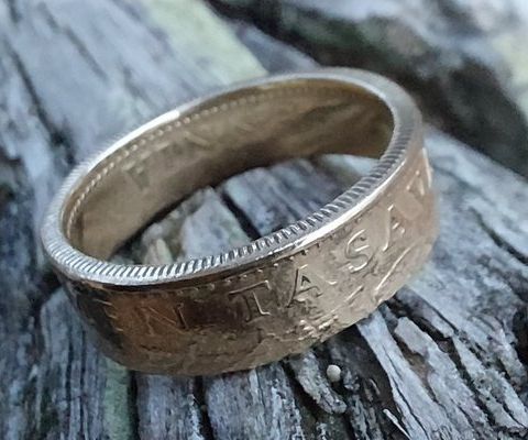 Aitous: Jokainen sormus on tuotettu aidoista viiden markan kolikoista, mikä tekee niistä ainutlaatuisia