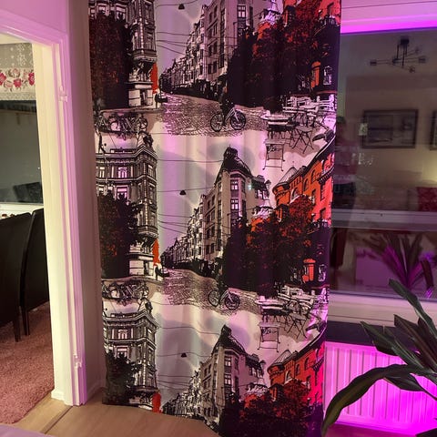Haluan ostaa Vallilan punaisen Tanja Orsjoen suunnitteleman verhon Saanko luvan.(Kuvassa 2 sinisenä).