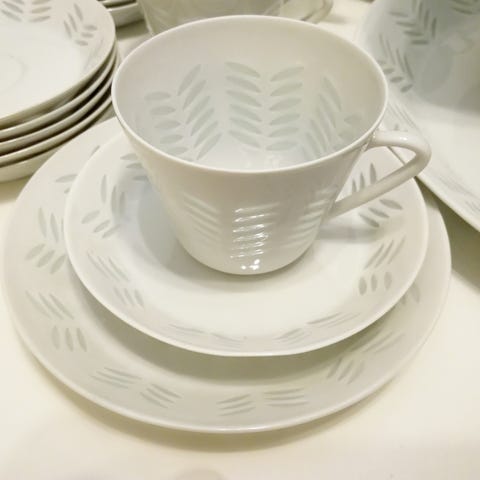 Riisiposliini kahvikupit ja kahvilautaset