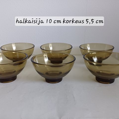 3 kpl Jälkiruokamaljoja Riihimäen lasi Nanny Still 1975-80 kirkas korkeus 4 cm halkaisija 13 cm
