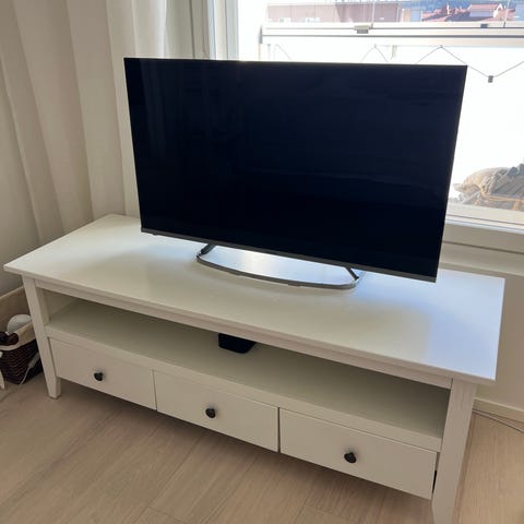 Myydään pari vuotta käytössä ollut ikealainen tv-taso. Muuten kuin uusi, mutta vasemmalla puolella kannessa pari pientä koloa. Ei paljoa näy ja liinalla peittyy.
