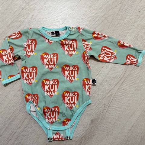 Lähes uudenveroinen Kui Designin beige Tälpual ja Toispual body kokoa 68 (6-9kk). Haarassa kahdet nepparit, joten on hyvin säätövaraa ja voi käyttää pidempään.