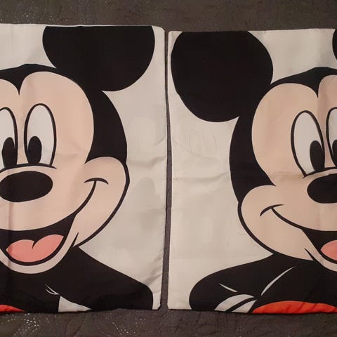 Disney Mikki Hiiri päiväpeitto /torkkupeitto. Ehkä 90-luvulta (?). Toinen puoli kokonaan v.sin/valkoraidallinen. Kunto hyvä. Koko n.175x140