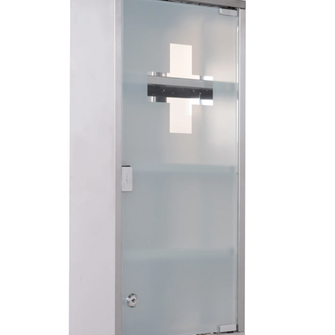 Käytännöllinen: tässä metallisessa lääkekaapissa on useita hyllyjä ja runsaasti säilytystilaa kaikille lääkkeillesi ja muille tavaroille.