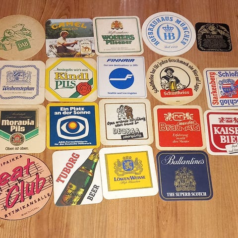 Myydään 21kpl KOFF A OLUT lasinalusia. Aluset ovat hyväkuntoisia ikäisikseen, mutta joissain pientä kulumaa pinnassa. Reunat ovat ehjät eivätkä ole revenneet mistään. Täydelliset vaikkapa miesluolaan tai kotibaariin. Takapuolelta löytyy laivastopeli. Kunto selviää kuvista. Lisää kuvia saa pyytämällä.