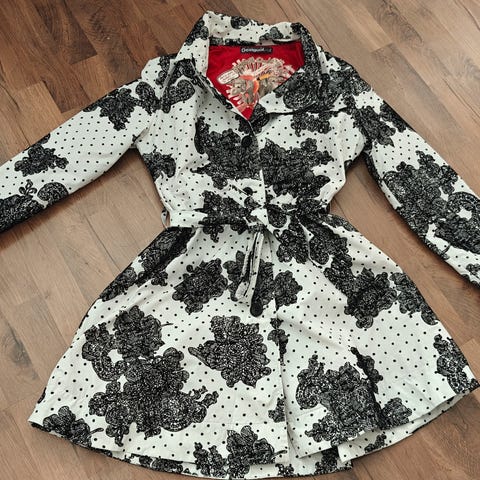 Desigual 42 pitkä takki kukka kuviot trenssi