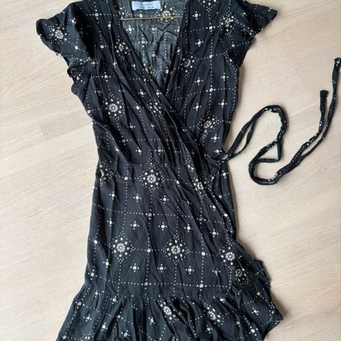 By malina vihreä kukkakuvioinen kietaisumekko. Ei moitteita kunnossa, hieman rypyssä säilytyksestä.