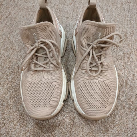 Steve Madden naisten tennarit. Paksu pohja ja hieman korotettu varsi. Kiristysnyörit ja merkkilogo edessä.