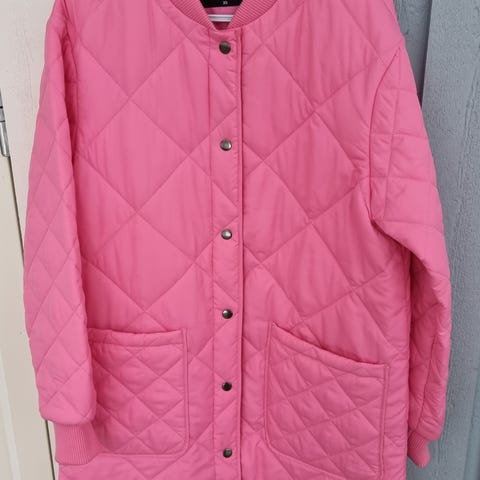 Vähän käytetty, tosi siisti, tikkitakki, ihana pinkki. Itse olen kokoa 38 ja tämä menee hyvin, joten vastaa mielestöni kokoa M.