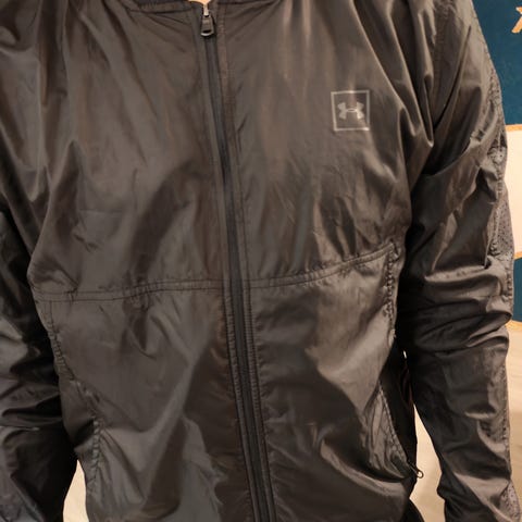 Myydään alle 10 kertaa päällä ollut todella hyväkuntoinen miesten ohut UA:n musta juoksutakki.