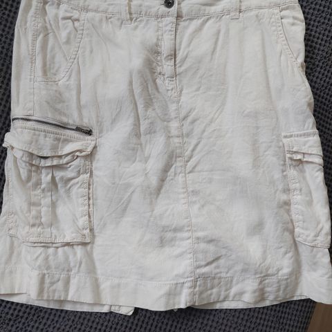 Kiva hame koko: 40, vyötärö 88 cm, pituus 57 cm. Materiaali 55% pellavaa,45% puuvilla. Pienet taskut edessä ja takana, edessä pieni vetoketju helpottaa pukemista. Nouto tai postitus kulut lisätään hintaa.